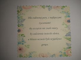Dla cudownej pary, z najlepszymi życzeniami! By szczęście nie znało miary, by codziennie świeciło słońce, a Wasze uczucie było wyjątkowo gorące.
