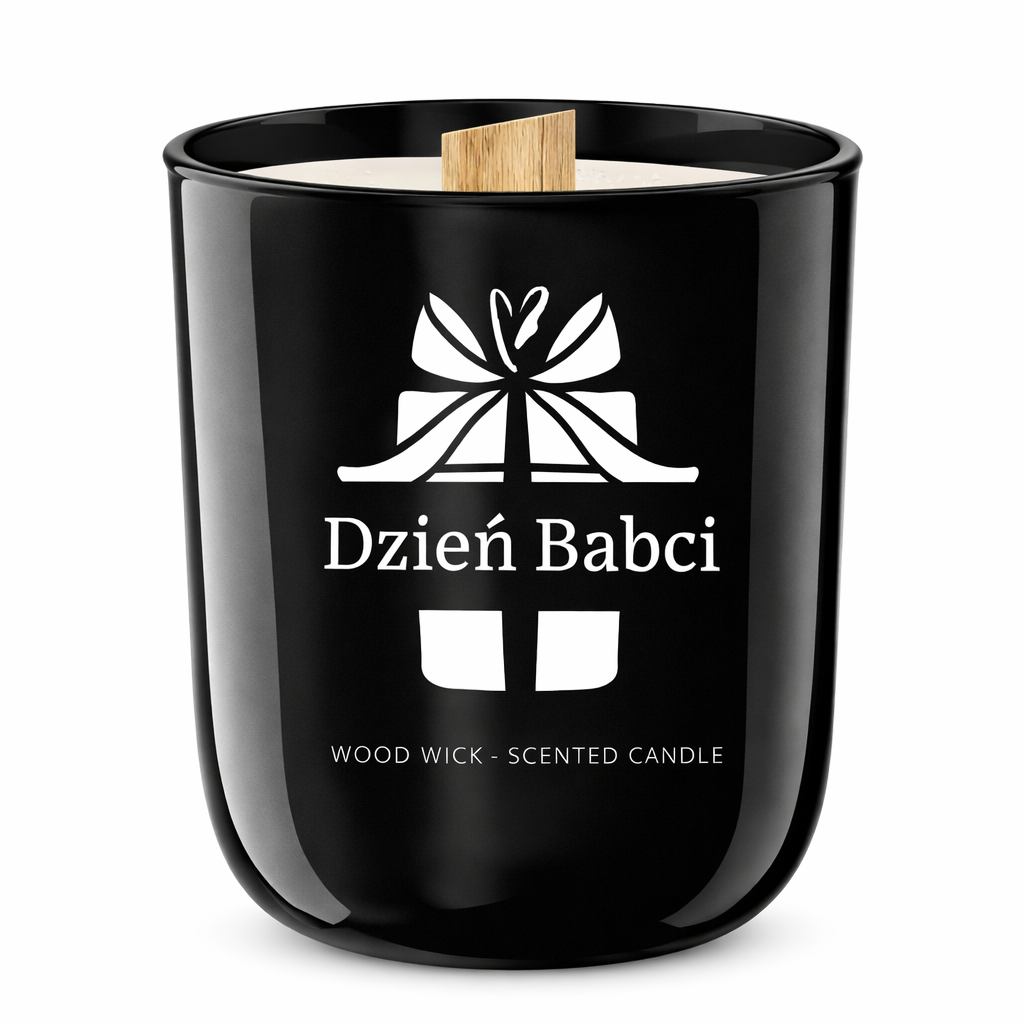 Świeca sojowa o zapachu perfum z naturalnym, drewnianym knotem, umieszczona w eleganckim, czarnym szklanym naczyniu . Drewniany knot zapewnia równomierne i stabilne spalanie, nie powodując efektu trzaskania ani dźwięku palącego się drewna. Minimalistyczny, biały nadruk na froncie świecy tworzy wyraźny kontrast z głęboką czernią szkła, podkreślając nowoczesny i elegancki charakter produktu. Świeca doskonale sprawdzi się jako stylowy element wystroju wnętrza, a także jako wyjątkowy i ponadczasowy prezent na Dzień Babci i Dziadka oraz inne szczególne okazje.